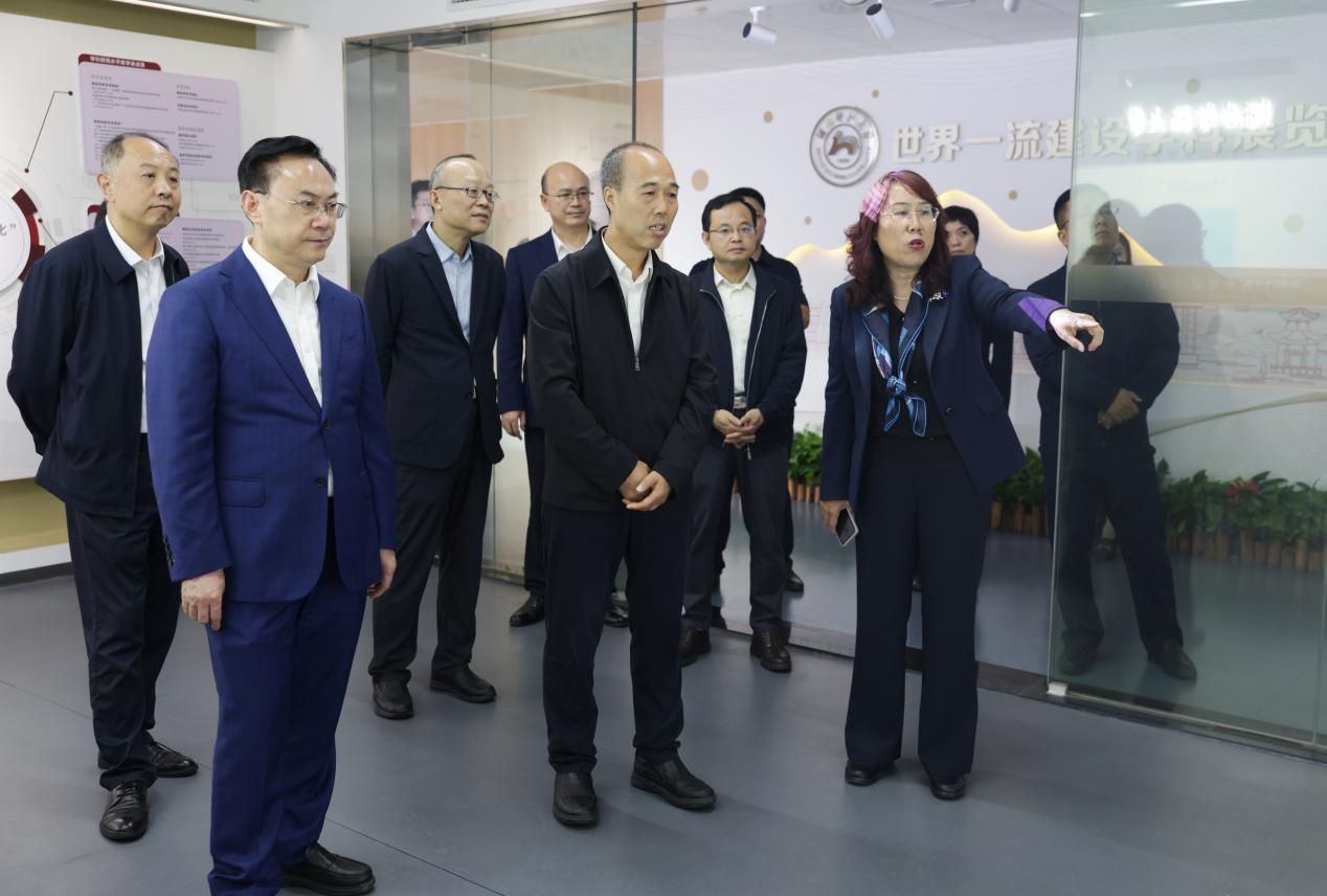 在国家一流学科展厅和人工智能与精准国际传播实验室(新时代中国故事国际传播数智实验室),马利怀详细了解了学校“双一流”建设进展和学科发展成就。他指出,高校是科技和人才资源的融合点,湖南师大要充分发挥学科优势,聚焦国家重大战略需求,加强产学研深度融合,为服务经济社会高质量发展提供有力支撑。