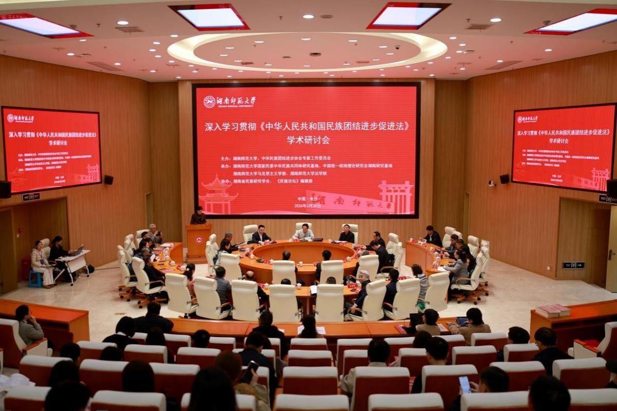 (记者 黄依依 刘欣语 刘思婷)3月28日,在全国两会刚刚结束之际,中华民族团结进步协会专家工作委员会和湖南师范大学迅速召开专题学术研讨会,就深入学习贯彻《中华人民共和国民族团结进步促进法》(以下简称《促进法》)开展专题研讨。国家民委原副主任、中华民族团结进步协会会长赵勇出席开幕式并作主旨讲话,湖南省政协原副主席武吉海,湖南省委统战部副部长、省民宗委党组书记、主任覃万成,湖南省社科联党组成员、副主席黄云志,中国工程院院士、湖南师范大学校长刘仲华等领导出席开幕式并致辞,来自中国社会科学院、中央民族大学等高校和科研机构的四十多位专家学者出席了会议。